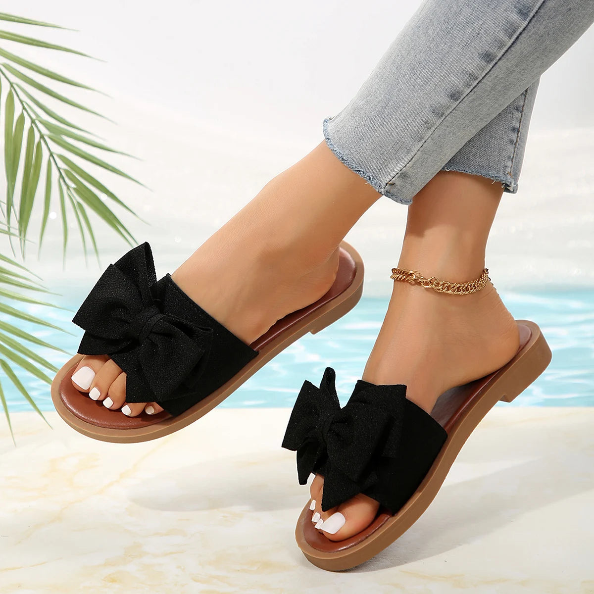 Cross-border 2024 summer new flat slippers bow princess style cute and