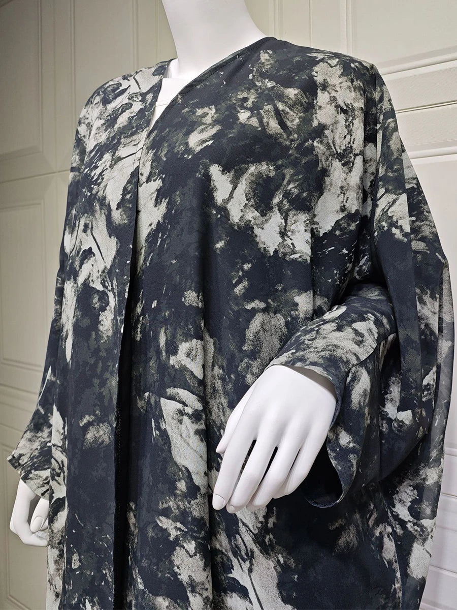 Siskakia Open Abaya für muslimische Frau Fledermaus Ärmel elegante los
